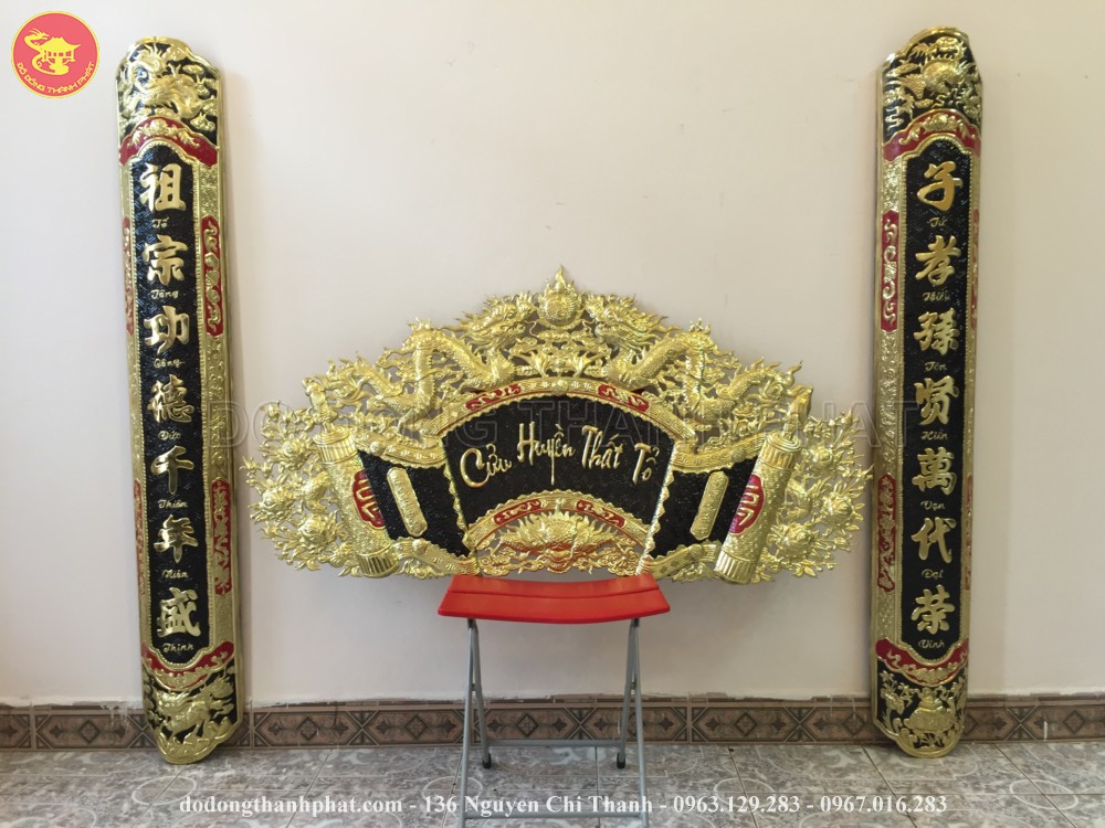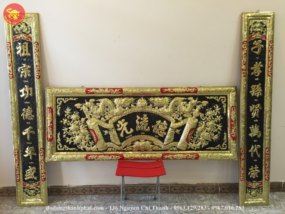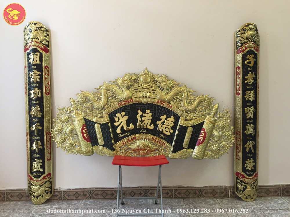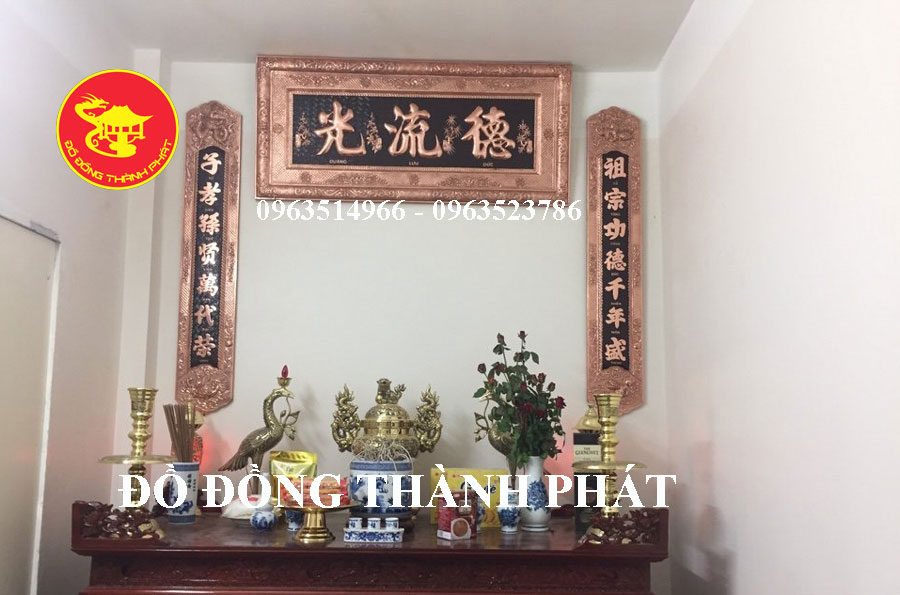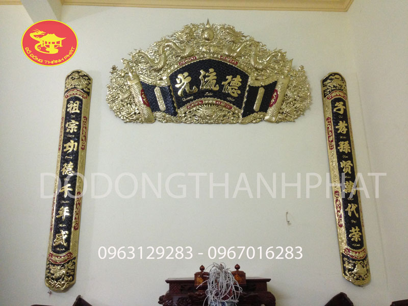 - Bộ hoành phi câu đối đồng thau hoặc đồng đỏ: